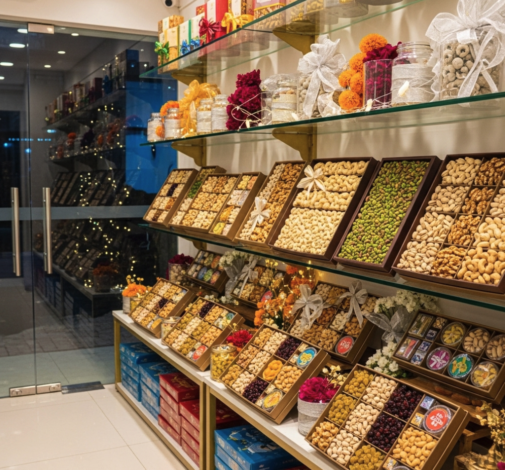 Experience the "goodness you deserve" every single day. We invite you to step into our warm and welcoming retail store in Hyderabad to explore our vibrant display of premium dry fruits, aromatic mouth fresheners, and traditional savories. For those who prefer the comfort of their home, our user-friendly website offers our complete collection at your fingertips.